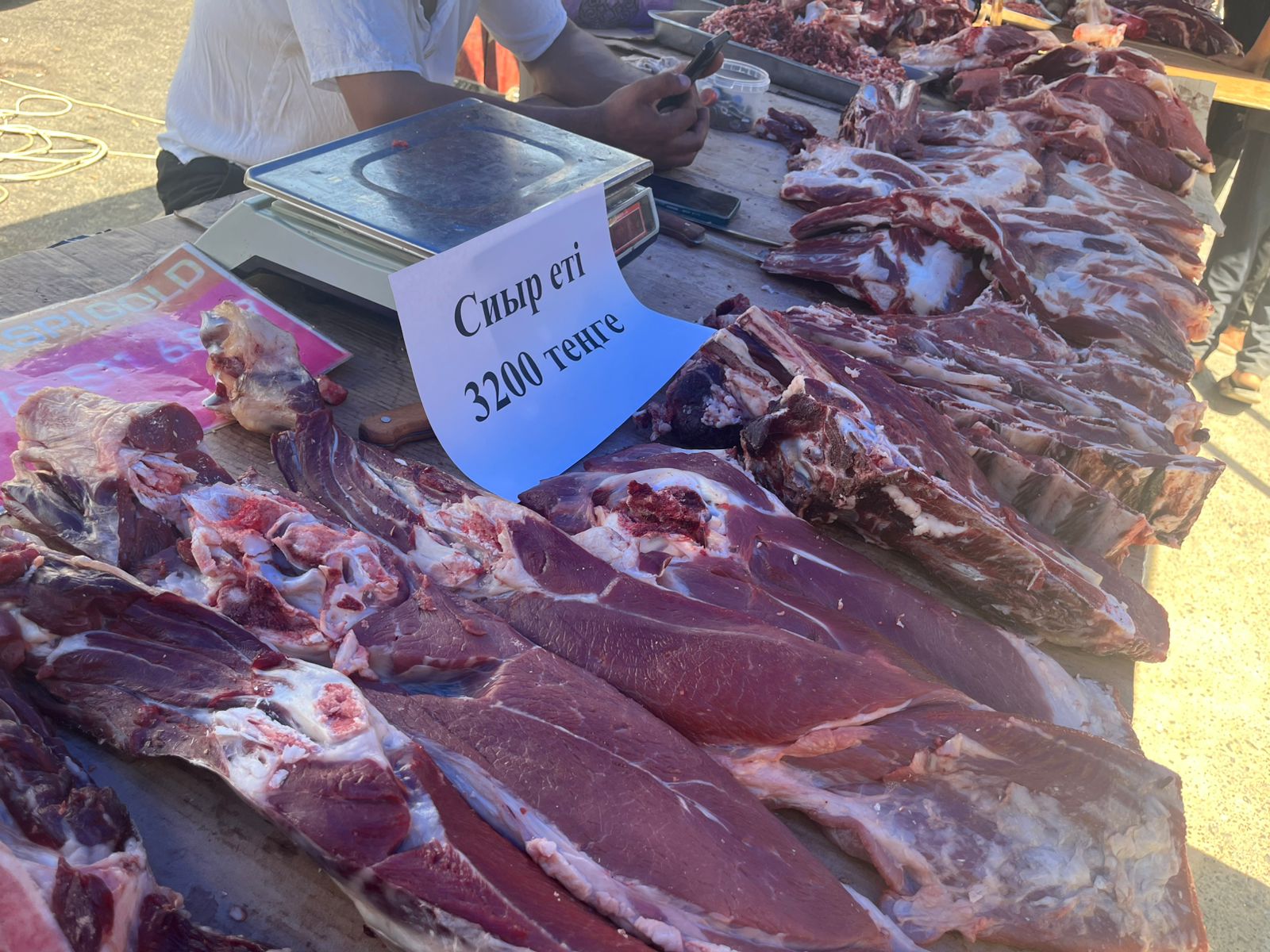 «Сегодня в Шымкенте работает около 60 социальных торговых точек, кроме того, еженедельно проводятся сельхозярмарки, где говядина с костями также реализуется по стабильной цене — от 3200 до 3300 тенге за килограмм. Продукция поставляется напрямую с животноводческих хозяйств Туркестанской области, — уточнил руководитель управления Талгат Мекамбаев.