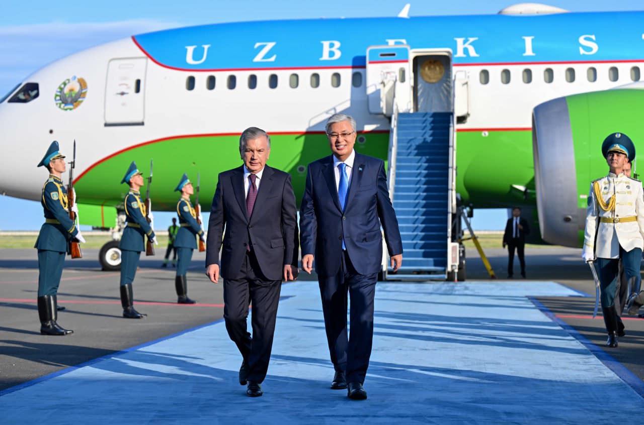 Қасым-Жомарт Тоқаев Қазақстанға мемлекеттік сапармен келген Өзбекстан Президенті Шавкат Мирзиёевті елорда әуежайында қарсы алды