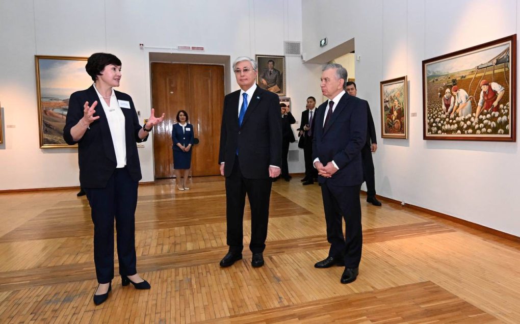 Қасым-Жомарт Тоқаев пен Шавкат Мирзиёев Әбілхан Қастеев атындағы Ұлттық өнер музейіне барды.