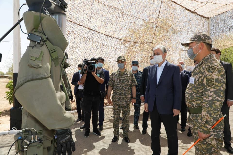 Қасым-Жомарт Тоқаев былтыр жарылыс болған Арыс қаласындағы №44859 әскери бөліміне барып, оның бүгінгі жағдайымен танысты. Қорғаныс министрі Нұрлан Ермекбаев өткен жылғы жарылыстан кейін қоймадағы оқ-дәрілерді кәдеге жарату және оларды тасымалдау жұмыстары жайында баяндады. Сонымен қатар әскери бөлімнің техникалық аймағындағы оқ-дәрілердің қалдығын тазалау, жарылғыш заттарды залалсыздандыру, бұзылған ғимараттарды қайта қалпына келтіру туралы айтты. Бұдан бөлек Қазақстан Президентіне әскери құрал-жабдықтар мен арнайы техникалар таныстырылды.