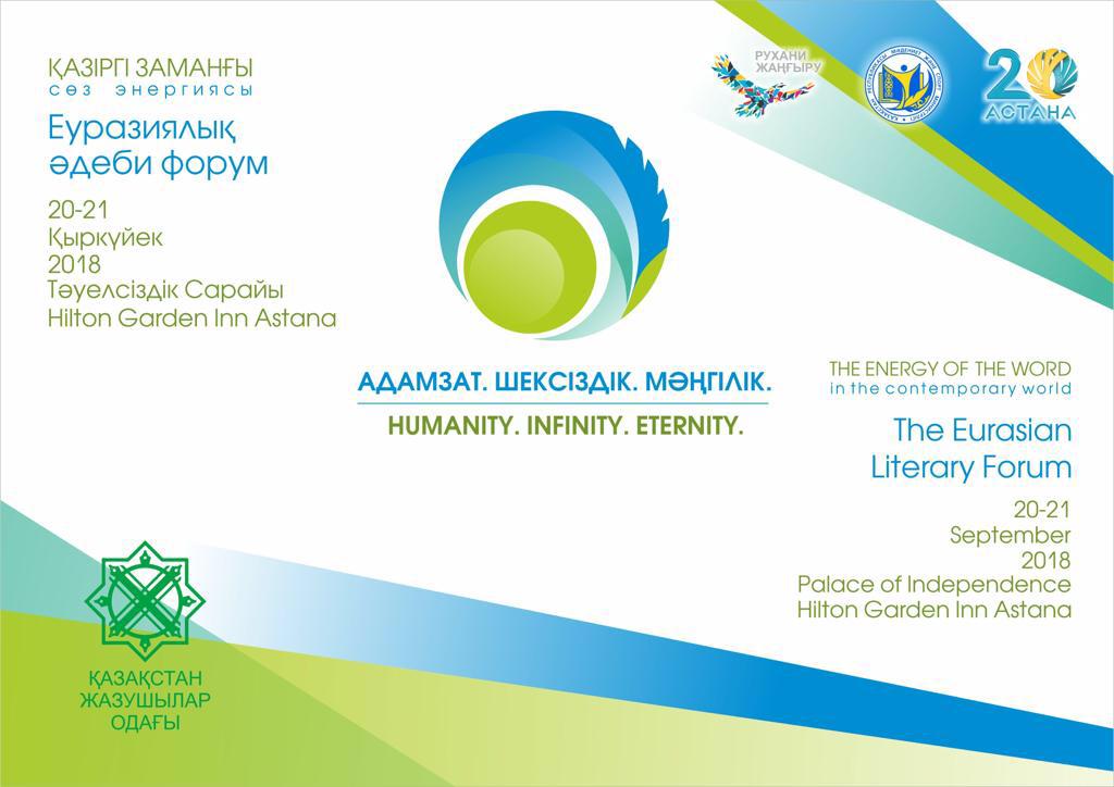 Қазақстан Жазушылар одағы басқармасы Елбасымыздың «Рухани жаңғыру» бағдарламасы аясында 2018 жылдың 20-21 қыркүйек аралығында «Қазіргі заманғы сөз энергиясы» атты Еуразиялық әдеби форумын өткізеді.