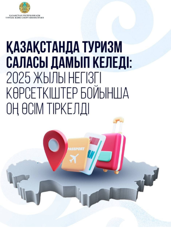 2025 жылдың қорытындысы бойынша Қазақстанның туризм саласы негізгі көрсеткіштер бойынша тұрақты өсім көрсетті. Ел ішінде саяхаттаушылар саны да, шетелден келетін туристер ағыны да артты. Сонымен қатар инвестиция мен бизнес кірістері де едәуір көбейді.