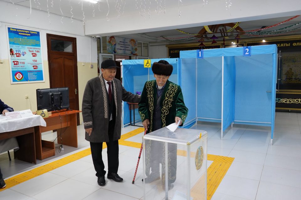 Қазығұрт ауданы, Қарабау ауылдық округінде орналасқан №293 референдум учаскесіне 100 жастан асқан қария Халық Әрипов арнайы келіп, өз таңдауын жасады.