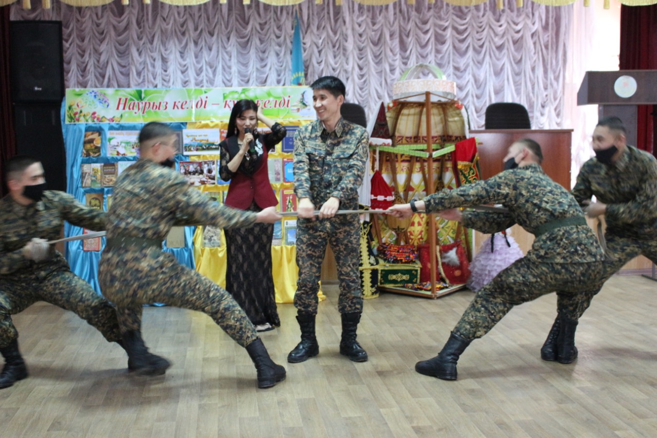 Этнографиялық сайыста әскери бөлімінің сарбаздары белсенділік танытып, қызықты өткен тартыста «Сұңқар» тобы бас жүлдені иеленіп, марапатталды. Патриоттық жігер мен рухты қалыптастыру мақсатында кештің соңы «Наурыз-думан» әніне ұласып, сарбаздардың елжандылық рухы көтеріліп, тың серпіліспен, көтеріңкі көңіл-күйде тарқасты.