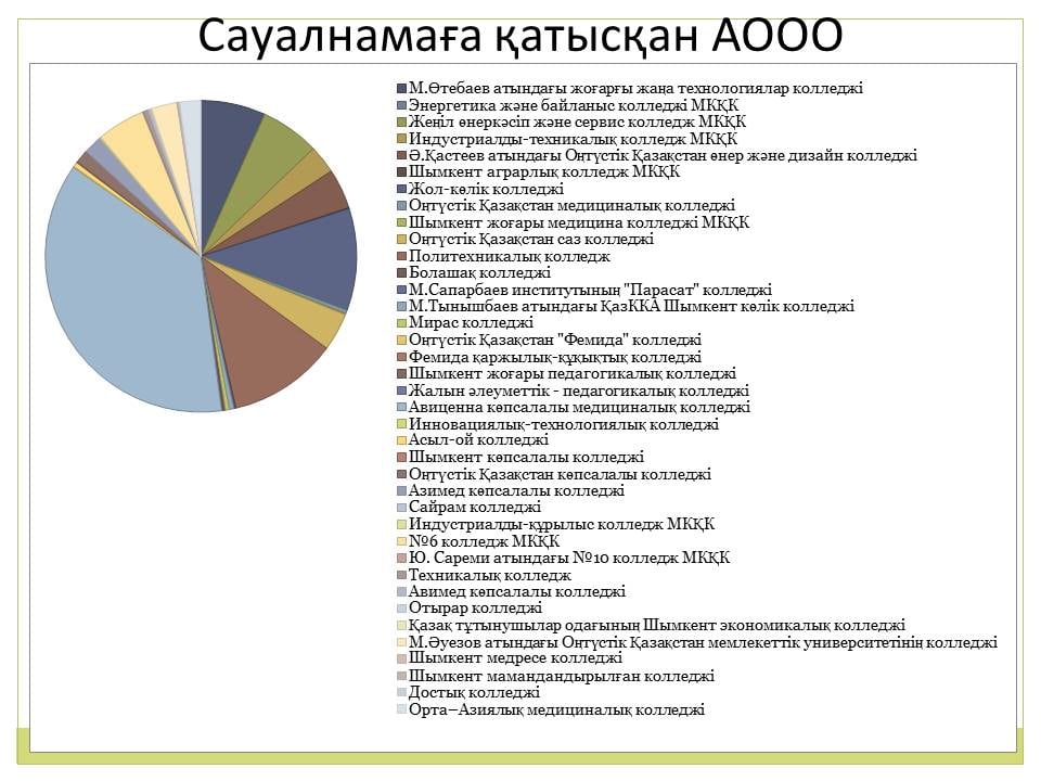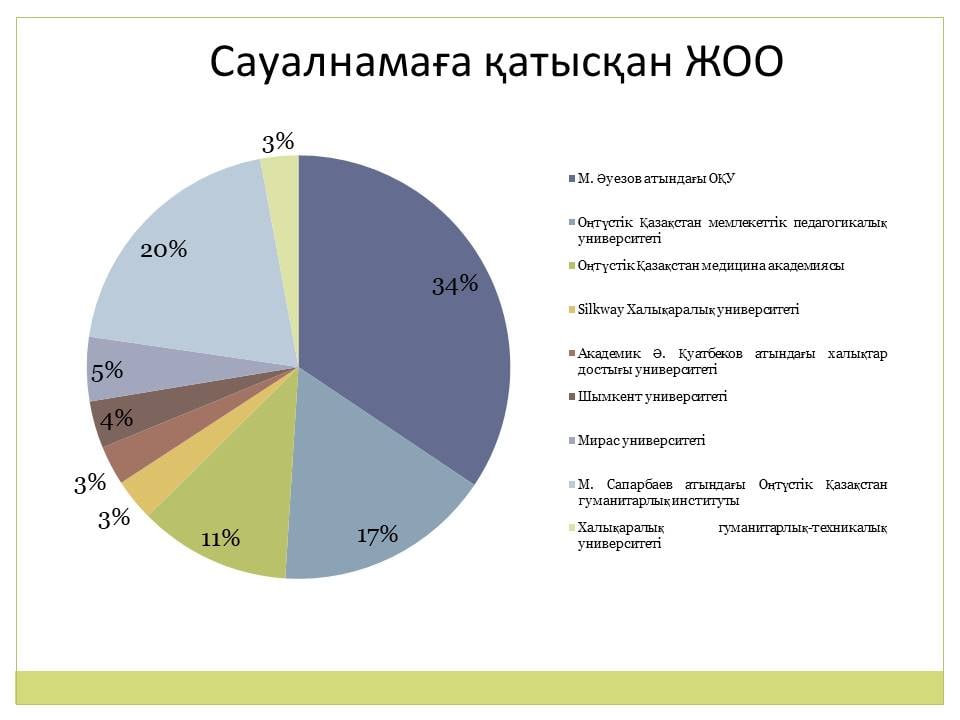 Сауалнама қорытындысы ЖОО және колледж басшылығына жолданып, нәтижесі бойынша тиісті жұмыстар жүргізу ұсынылды.