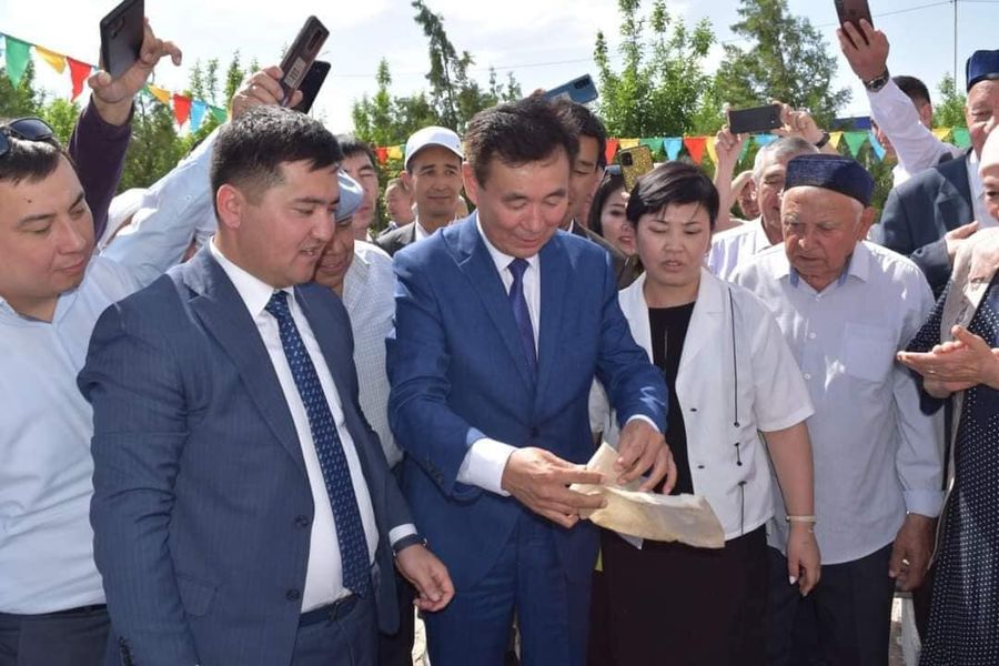 Салтанатты шарада аудан әкімі Ғ. Рысбеков жарты ғасыр тарихы бар хатты ашып, ізгі лебізін білдірді.