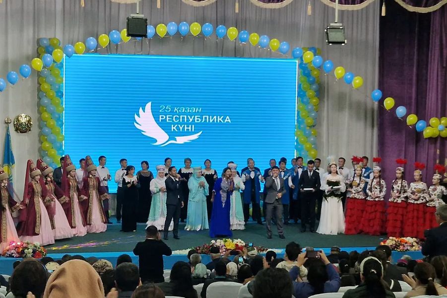 Жиын басында ҚР мемлекеттік Әнұраны орындалды. Салтанатты шараға аудан әкімі Қайрат Жолдыбай қатысып, тұрғындары мен қонақтарды Республика күні мерекесімен құттықтады.