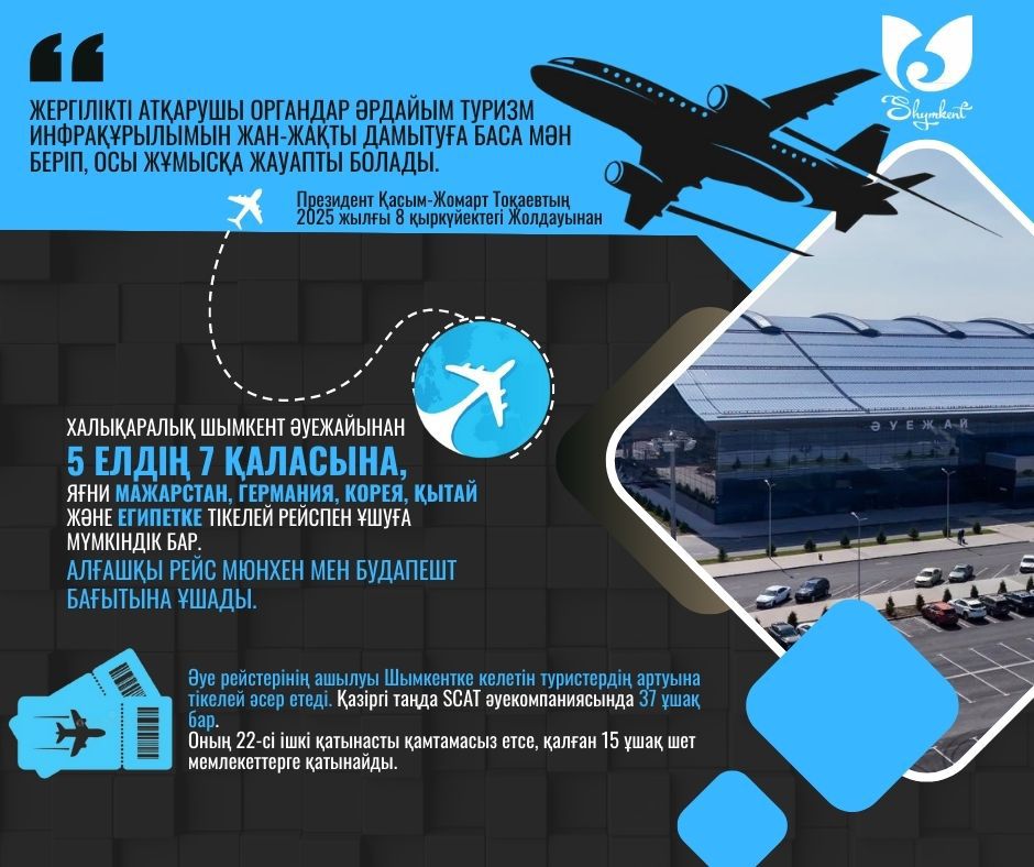 ШЫМКЕНТ: ЖЕТІ ҚАЛАҒА ТІКЕЛЕЙ ХАЛЫҚАРАЛЫҚ ӘУЕ РЕЙСТЕРІ ІСКЕ ҚОСЫЛДЫ