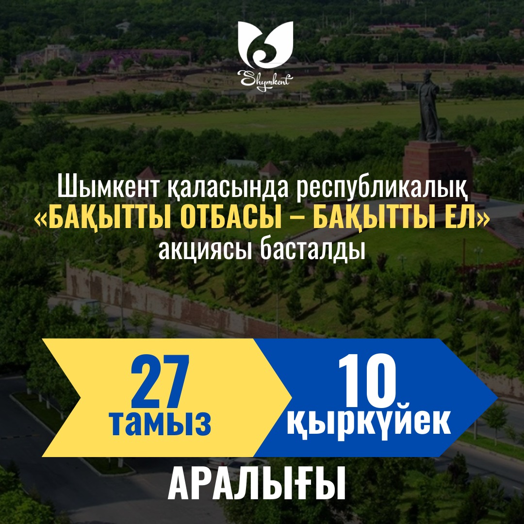 Осы мақсатта ағымдағы жылдың 27 тамыз бен 10 қыркүйек аралығында Шымкент қаласында республикалық «Бақытты отбасы – бақытты ел» акциясы өткізілетін болады.