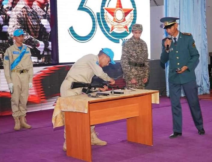 Іс-шарада М.Әуезов атындағы мектептің оқушылары қаруды жылдам шашып, қайта құрау бойынша шеберліктерін көрсетті.
