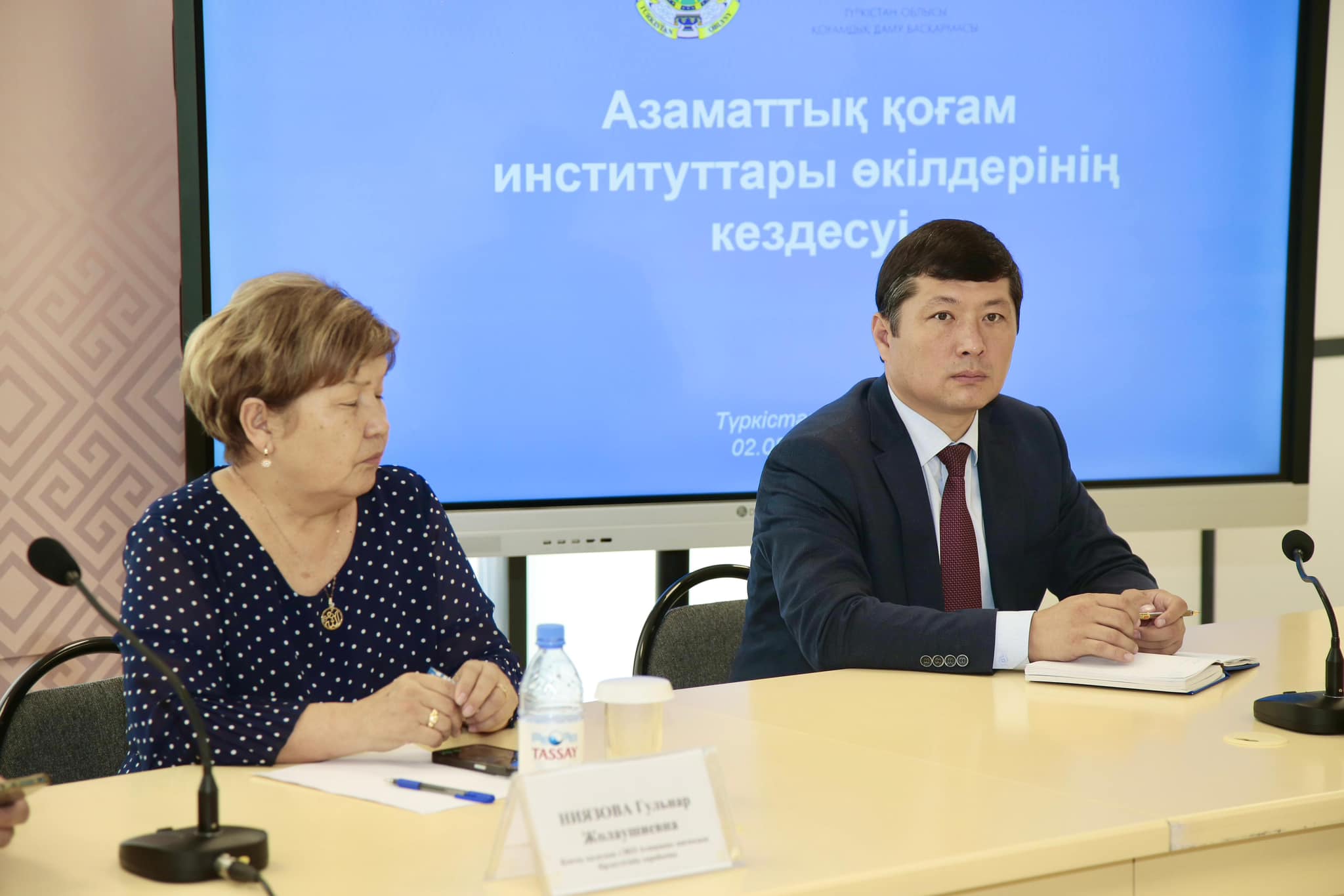 Жиында Қазақстан Азаматтық Альянсының президенті Бану Нұрғазиева, «Түркістан облысы кәсіподақтар орталығы» аумақтық кәсіподақтар бірлестігінің төрағасы Бердіғали Өмірәлі, «Береке» қоғамдық бірлестігінің орынбасары Гүлсім Андабаева, «Бітімгер» медиаторлар қоғамдық бірлестігінің төрағасы, кәсіби медиатор, облыстық қоғамдық кеңестің мүшесі Бақытжан Бейсембаев және өзге де азаматтар сөз сөйлеп, көптеген мәселелерді ортаға салды.