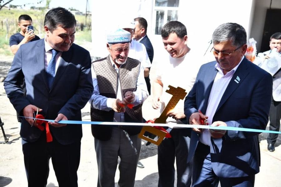 Жаңа баспана иесінің қуанышын бөлісуге келген аудан әкімі Сәкен Сұлтанханов пен мәслихат төрағасы Уалихан Ұзақов ізгі тілектерін жеткізіп, сыйлық тарту етті. Әжелер шашу шашып, қариялар ақ баталарын берді.