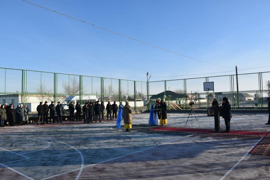 Ауданның 95 жылдық мерекесіне орай ұйымдастырылған спорт нысанының ашылу салтанатына аудан әкімі Мұхит Тұрысбеков және ауыл қариясы, еңбек ардагері Дастан Бейсенбі арнайы қатысып, игі іске арқау болған барша азаматтарға алғыстарын жеткізіп, нысанның ашылуымен баршаны құттықтады.