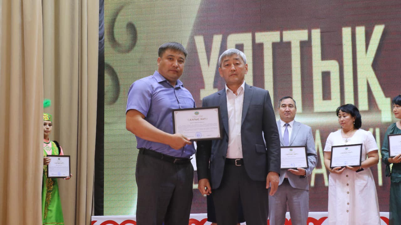 Мерекелік жиында аудан әкімінің орынбасары Е.Орманов пен мәслихат хатшысы С.Сейсенбаев аудан жұршылығын мерекелерімен құттықтап, акцияға белсенді қатысқан азаматтарға аудан әкімінің Алғыс хатын табыстады. Осы ретте мереке күнге орайластырылған шара барысында Тұрар Рысқұлов мектебінен кейін эстафета тізгінің ұстаған Бауыржан Момышұлы мектебінің домбыра үйірмесіне 50 домбыра сыйға тартылды. Содан соң эстафетаны аудан әкімінің орынбасары Ербол Керімбекұлы саурандық әріптесі Серік Өмірханұлына табыстады. Тиісінше Серік Өмірханұлы саурандықтардың атынан естелік сыйлығын табыс етіп, аудан жұртшылығын айтулы мерекемен құттықтады.