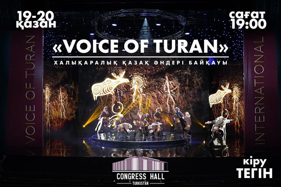 Қазан айының 19-20 күндері Түркістан облысы әкімдігінің қолдауымен Түркістан қаласындағы Конгресс Холл кешенінде халықаралық «Voice of Turan» қазақ әндері байқауы өтеді, деп хабарлайды облыстық Өңірлік коммуникациялар қызметіне сілтеме жасаған elordafocus.kz ақпараттық агенттігі.