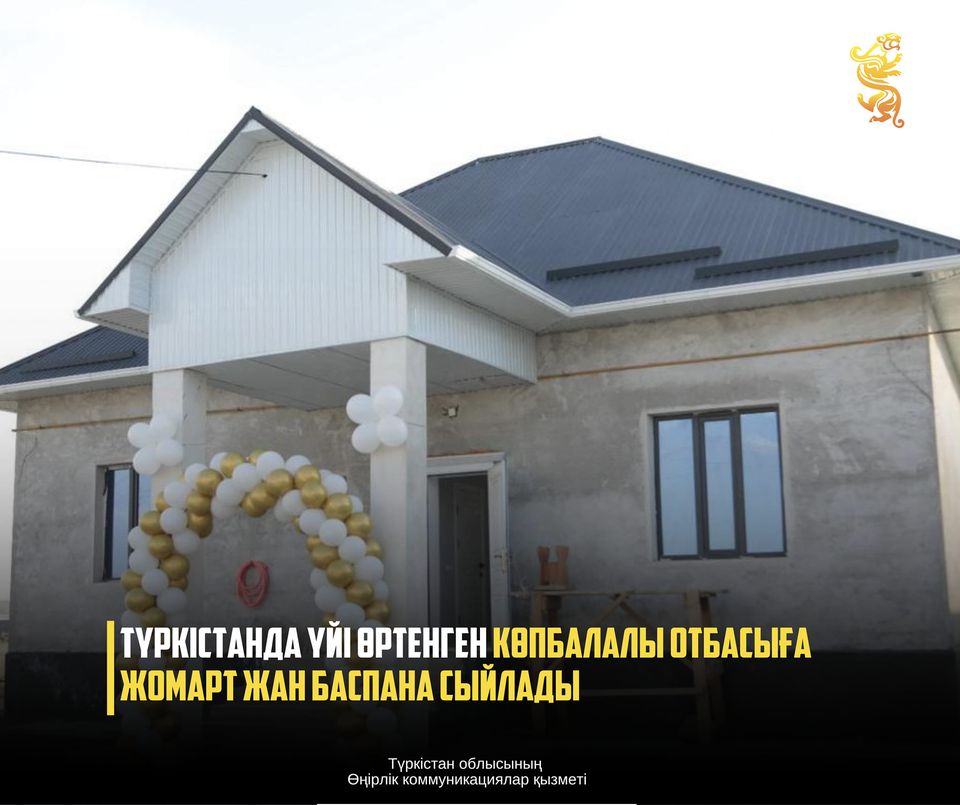 ТҮРКІСТАНДА ҮЙІ ӨРТЕНГЕН КӨПБАЛАЛЫ ОТБАСЫҒА ЖОМАРТ ЖАН БАСПАНА СЫЙЛАДЫ