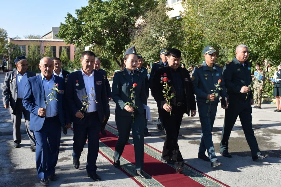 «Жас сарбаз» әскери-патриоттық қозғалысы Түркістан облыстық филиалының төрайымы Аружан Шекербек, Түркістан каласының қорғаныс істері жөніндегі басқармасының тәрбие, идеологиялық, әскери-патриоттық жұмыстар және Қарулы Күштер ардагерлерімен жұмыс бөлімше бастығы аға лейтенант Русланжан Садықов пен Ауған соғысының ардагерлері, әскери жетекшілер және жас сарбаздар да оқушылармен пікір алмасты.