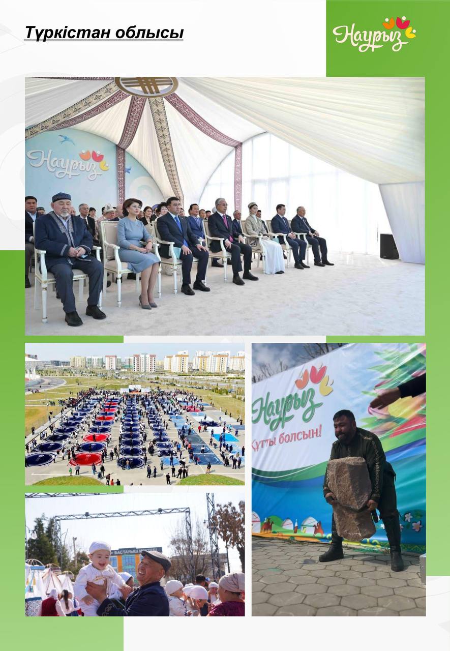 Наурыз мерекесі аясында облыс аумағында 100 тақырыптық киіз үйден тұратын этноауыл ұйымдастырылып, келушілерге қазақ халқының мәдениеті мен салт-дәстүрлері кеңінен таныстырылды. Мерекелік шаралардың мазмұнын байытуға мәдениет және өнер саласының 250-ден астам өкілі атсалысты.